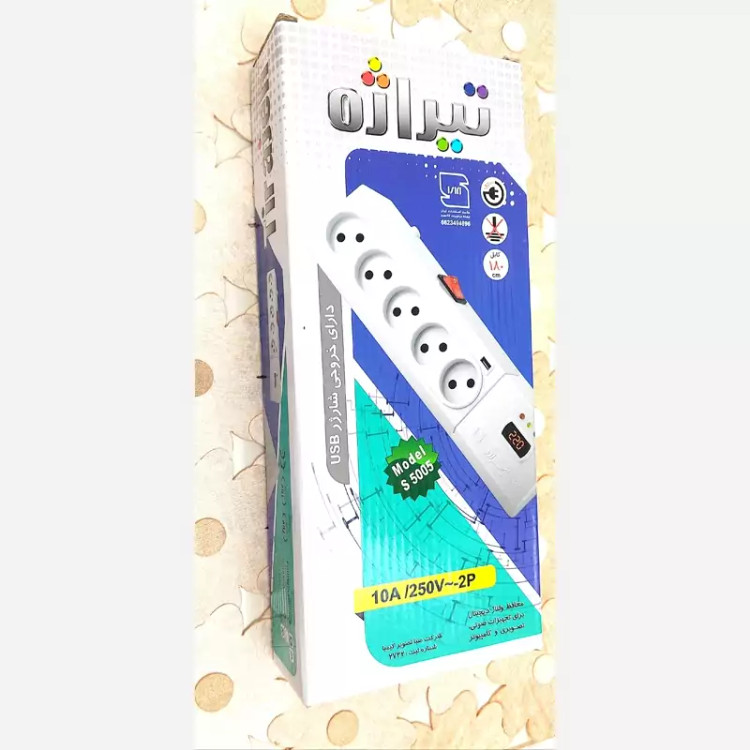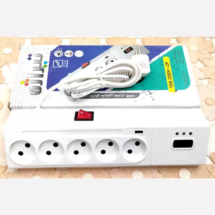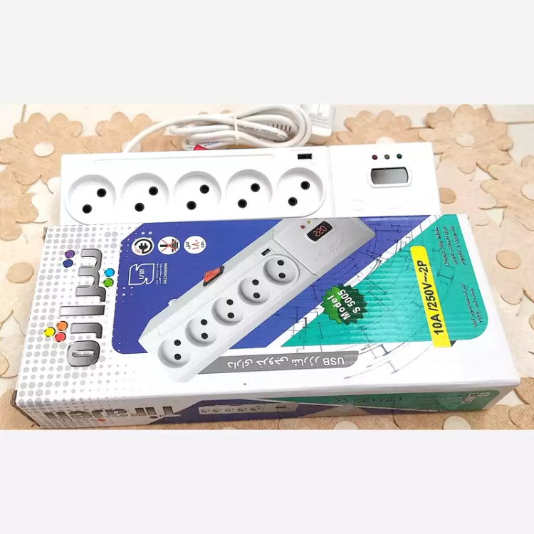 محافظ ولتاژ دیجیتال تیراژه نمایشگر ولتاژ،برای تحهیزات صوتی،تصویری،کامپیوتر،دارای خروجی شارژر USB،کابل180 سانتی،