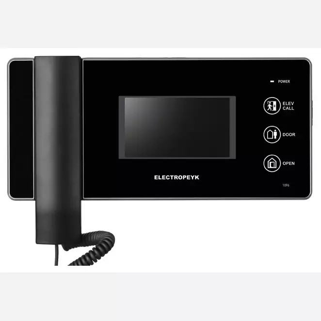 نمایشگر 4.3 اینچ دارای صفحه کلید لمسی قابلیت اتصال به 2 پنل درب ورودی و 1 دوربین امنیتی گوشی تصویری 4.3 اینچ الکتروپیک 1096 ، دارای حافظه داخلی و خارجی، قابلیت عکس برداری و فیلم برداری